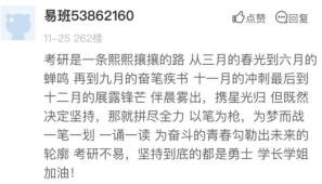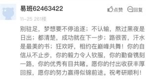 本次活动通过线上线下齐助力的方式为考研学子冲刺加油鼓劲。线上活动通过搭建易班轻应用平台征集对考研学子的祝福和鼓励,留言中有对2022年考研学子的殷切祝福,也有对自己未来规划许下的美好愿景。据悉,此次活动共收获评论留言260余条,轻应用页面浏览量近700人次。