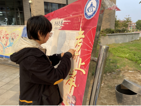 线下活动中,学院易班工作室人员在食堂门口摆放考研助力留言板,给考研学子提供一个留言交流的平台,同时,工作人员还筛选出优质的留言粘贴在海报上展示。