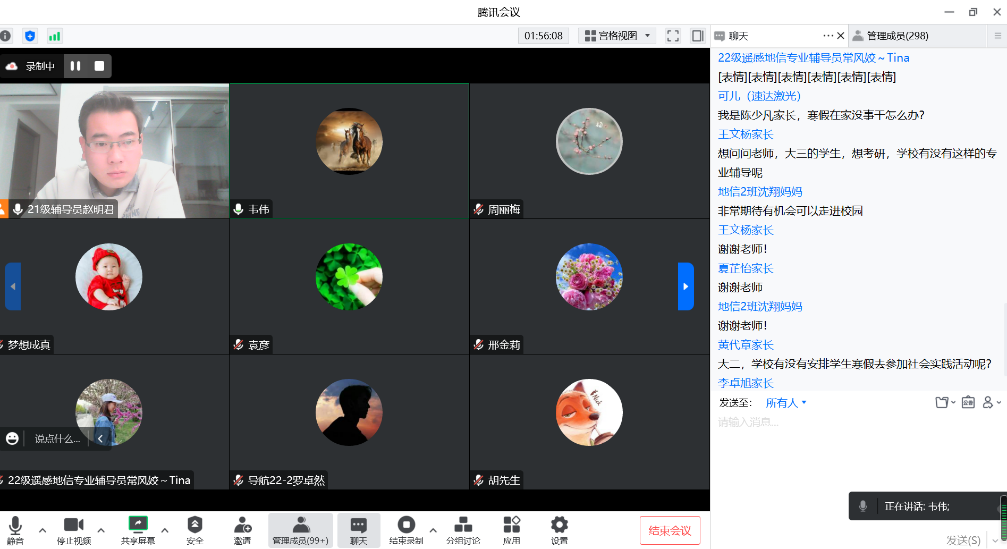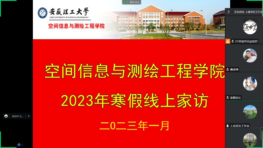 为进一步巩固家校联系、加强学生思想教育和心理关怀引导,推动家校间理解合作,共同促进学生成长。1月7日上午,威尼斯9499登录入口通过腾讯会议平台开展了2023年寒假线上“面对面”家访活动,学院领导班子成员、系主任教师、专职辅导员、学生资助宣传大使,以及部分学生家长等300余人参加此次线上家访。