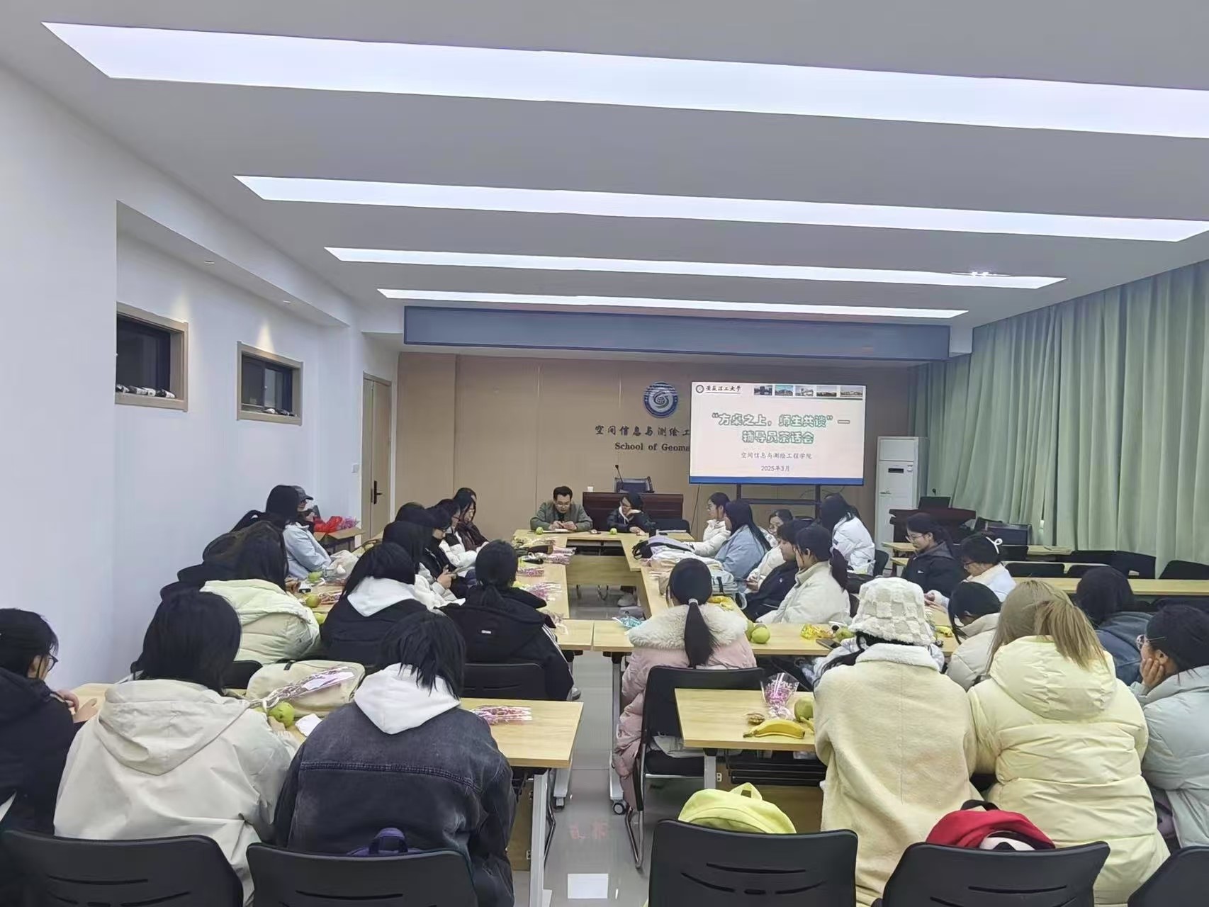 本次茶话会围绕思想困惑、课程学习、校园生活、实践竞赛、职业规划和人际交往等话题展开讨论。辅导员老师结合学生管理实际案例,对同学的问题给予耐心的解答、启发,引导同学们打好学科基础,提升自身专业学习能力,积极投入学科竞赛,沉淀自身素养。在人际关系处理中多一份理解和包容,学会有效沟通,珍惜同学情感;加强体育锻炼,提升身心健康水平。