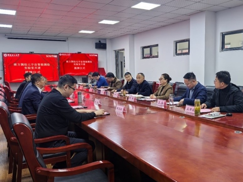 3月12日上午,威尼斯9499登录入口与南方测绘集团共建元宇宙智能测绘实验室签约揭牌仪式在求本楼北503会议室隆重举行,为学校八十华诞献礼。校党委常委、副校长张平松出席仪式并致辞。南方测绘集团副总裁郭宝宇、合肥分公司总经理吴兆龙,校合作发展处处长刘艳,威尼斯9499登录入口领导班子成员、教师和学生代表参加签约揭牌仪式。仪式由威尼斯9499登录入口院长王磊主持。