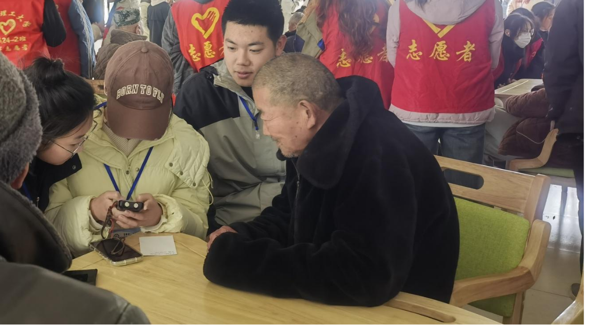 活动现场,测绘科技与传统志愿服务的创新融合成为亮点。志愿者们运用无人机航拍技术拍摄全景纪念照,地理信息团队记录老人人生轨迹的时光地图。在智能手机课堂上,志愿者们手把手教老人使用地图、通话等功能,82岁的王爷爷与家人连线,激动得热泪盈眶。敬老院的工作人员热情参与并感慨道,“这些年轻人教得真仔细”。