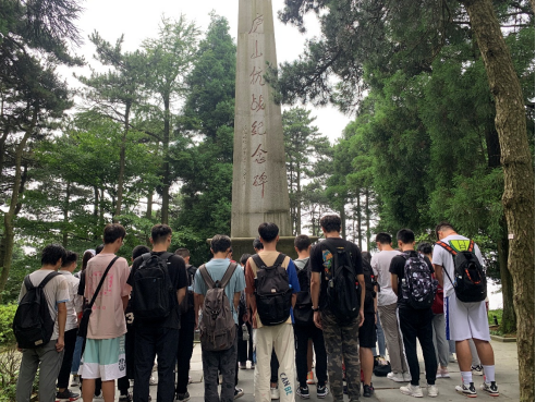 抗日战争的胜利对我国有着非同凡响的意义,抗日战争胜利后的1946年,时第九十九军选择在庐山小天池山麓建筑“陆军第九十九军抗战阵亡将士纪念碑”,2007年在旧址上修建了“庐山抗战纪念碑”。师生共同站立于纪念碑之前为英雄们的陨落而默哀,向无私奉献的英雄们致敬,他们百折不挠,坚毅顽强的精神至今激励着后人砥砺前行。