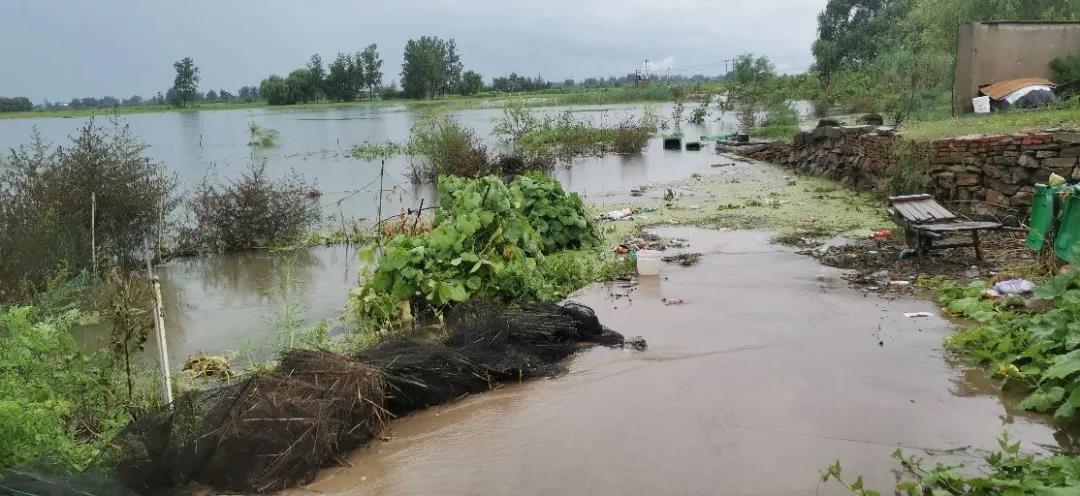 坝外村庄被淹没的水泥路与农田
