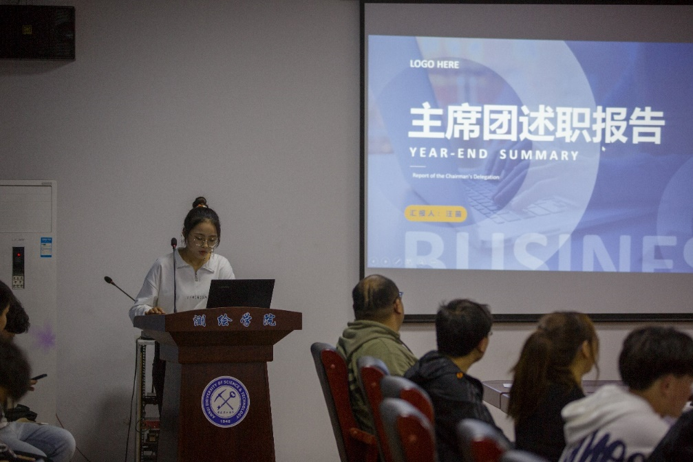 主席团和各部门负责人简明扼要的介绍了各部门的主要任务及举办活动,主要以迎新活动、思想引领、红歌舞蹈大赛、心理情景剧、雷锋月活动等活动为例,简述了活动的前期准备工作,部门之间的配合和部员之间的协调工作,以积极负责的工作作风完成工作。接下来不同部门分部介绍了各部活动及工作情况,结合各部门的工作完成情况进行介绍和总结。