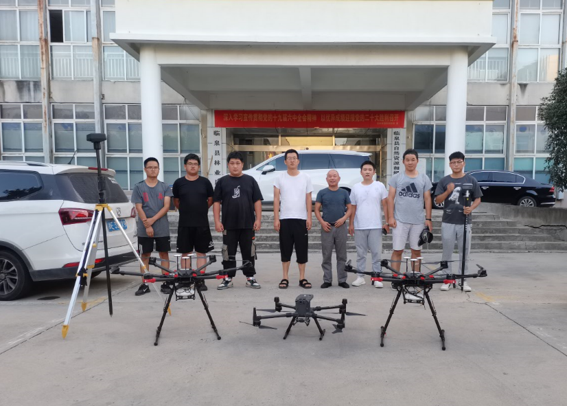 根据威尼斯9499登录入口乡村振兴定点帮扶工作领导小组(扩大)会议要求及临泉县自然资源和规划局工作需求,2022年8月4日,威尼斯9499登录入口组织新入职教师谭浩博士、闵祥强博士及临泉籍研究生韩雨辰等3人,在浙江中海达空间信息技术有限公司工程技术人员姚一凡、张栋、李建军、何子威等4人协助下,携带一台大疆M300型无人机和两台大疆M600型无人机,赴阜阳市临泉县开展中心城区三维数字建模帮扶工作的第一阶段任务——无人机倾斜摄影测量。临泉县自然资源和规划局测绘科辛红主任积极配合帮扶工作组的各项工作。
