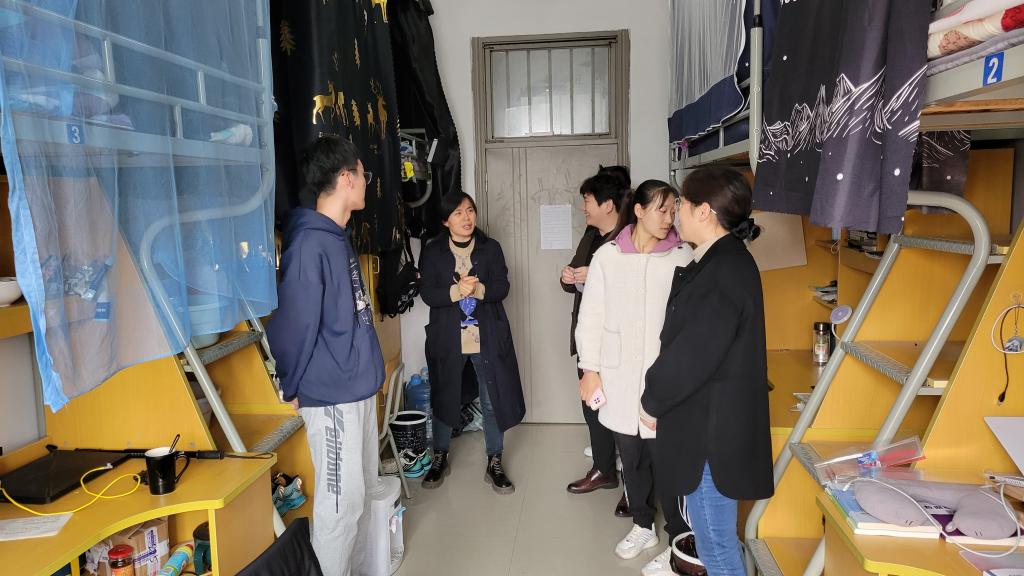 在检查过程中,孟静与同学们进行了亲切的交流,要求学生增强安全防范意识,注意防火防盗,禁止使用违章电器,自觉维护宿舍安全;养成良好的文明习惯,积极上进,共同保持宿舍卫生整洁。学院一行人对宿舍插座使用、阳台杂物堆积、违章电器使用等可能存在的安全隐患进行了仔细排查,及时排除安全隐患。